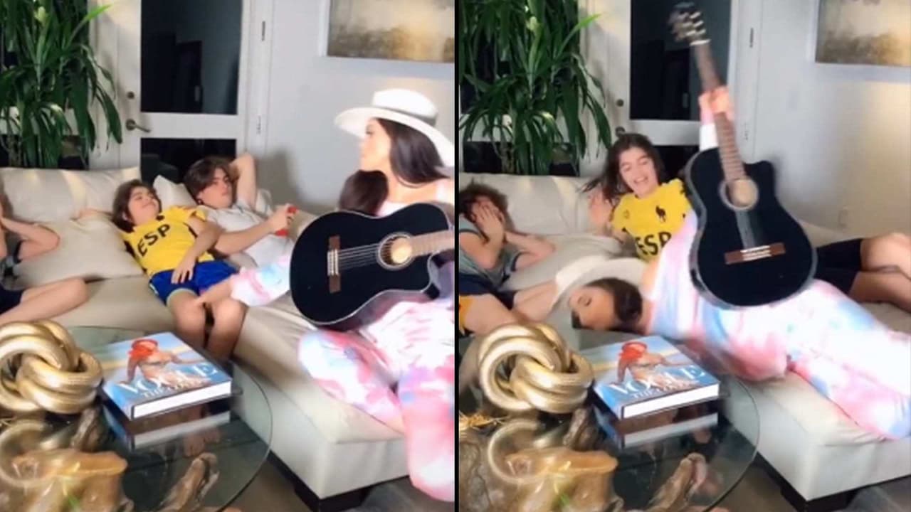 Ana Bárbara quiso darle una lección a sus hijos pero terminó en el suelo con todo y guitarra