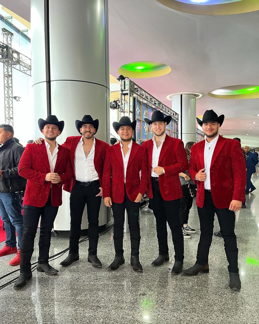 "Familia cómo estamos, nosotros somos Calibre 50 y les presentamos al nuevo vocalista de Calibre 50, mi compa Juan De Dios, ahí va, un pedacito viejo", dijo Armando para darle entrada al cantante.