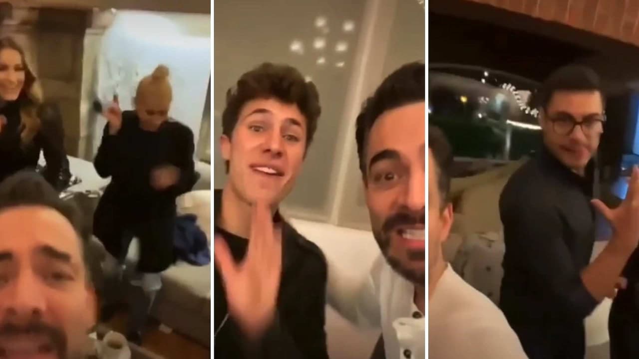 ‘Feliz, Feliz’ fue el éxito de la agrupación que aparecieron bailando y disfrutando Omar Chaparro, Carlos Rivera, Yuri, Consuelo Duval y Juanpa Zurita