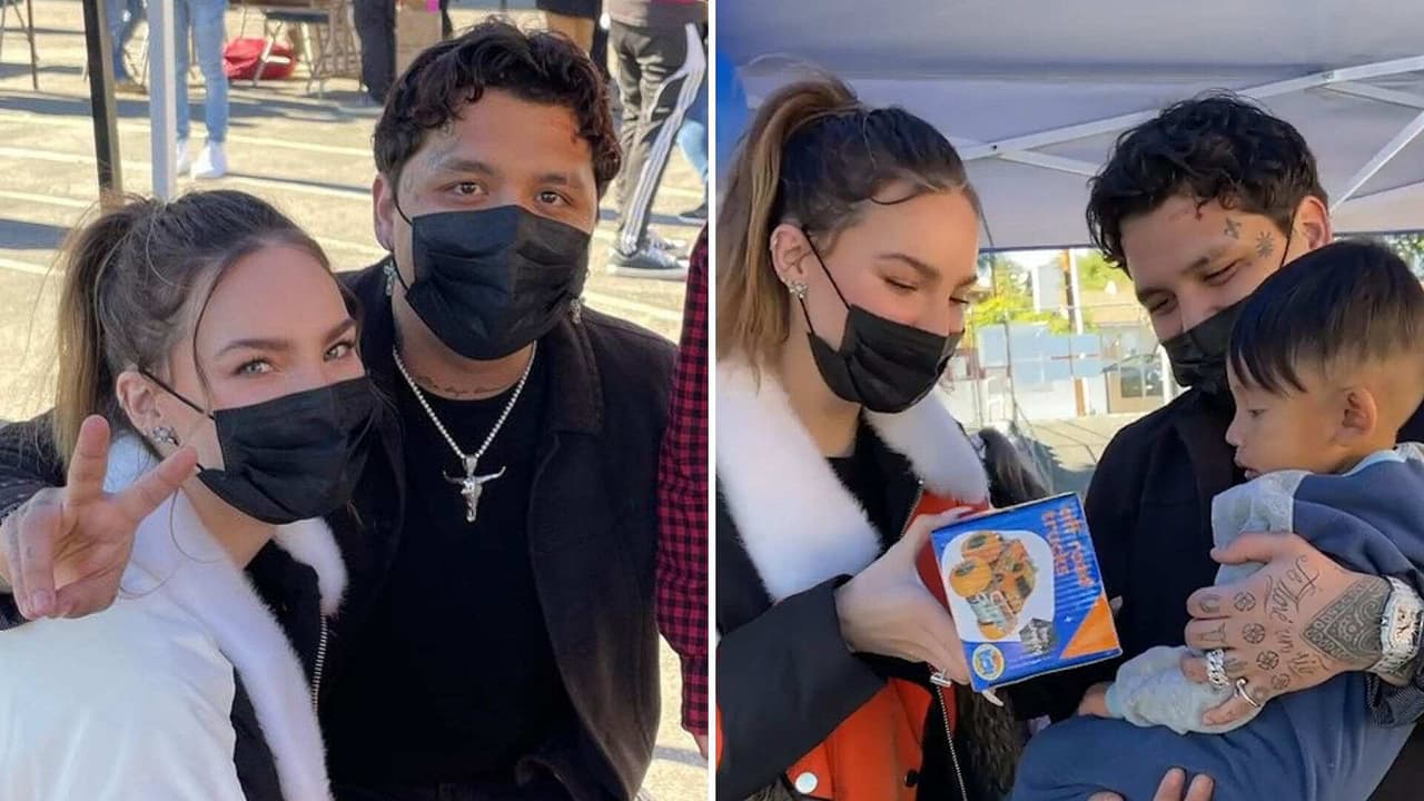 Nodal y Belinda se convierten en Santa Claus y regalan juguetes a niños de bajos recursos