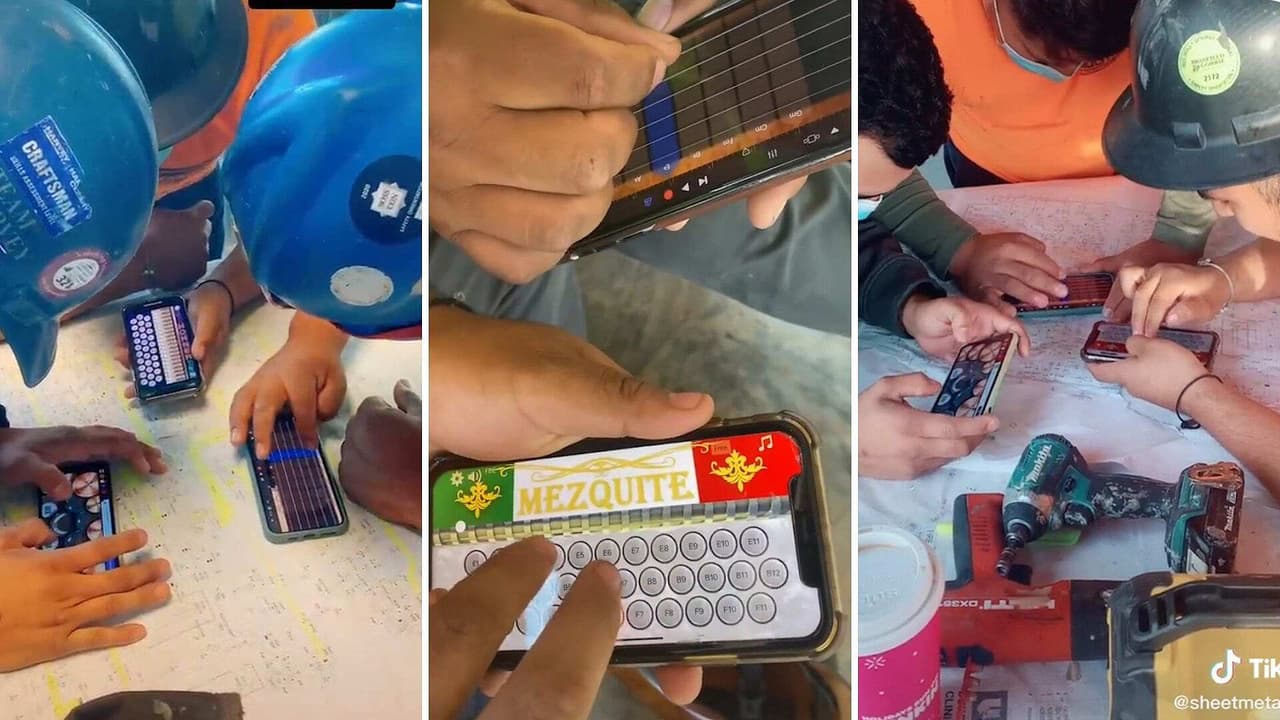 Trabajadores de construcción forman banda de corridos y sus instrumentos son ¡sus celulares!